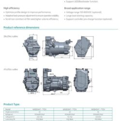 New energy vehicle air conditioning electric compressor is the third generation of electric compressor products launched by MALGOO, also known as semi-hermetic electric compressor. The product integrates DC per-manent magnet synchronous motor, drive and scroll mechanism components, lt has optimized the scroll profile, dynamic balance design and software control algorithms, and the product reliability has been furtherimproved. At the same time, it has the characteristicsof small size, high efficiency, low noise, high rotationspeed and so on. lt is widely used in BEV, HEV,PHEVautomobile air conditioning and battery thermalmanagement systems.