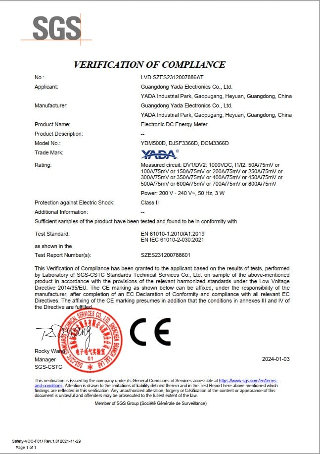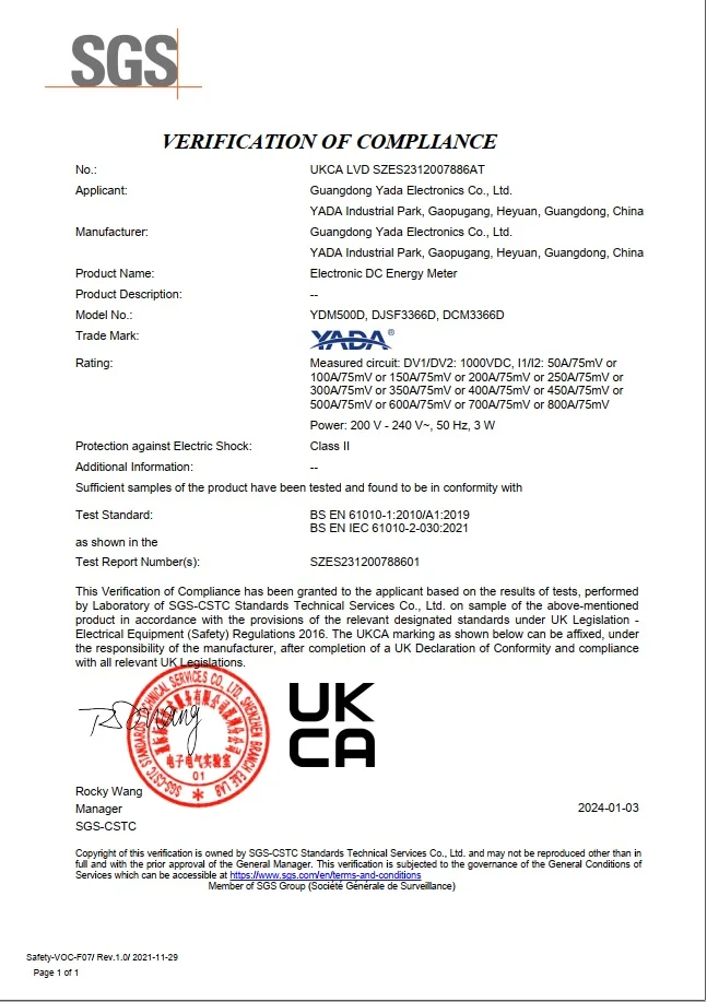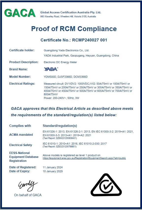Product Name | YADA YDM500D DC Energy Meter | |||
