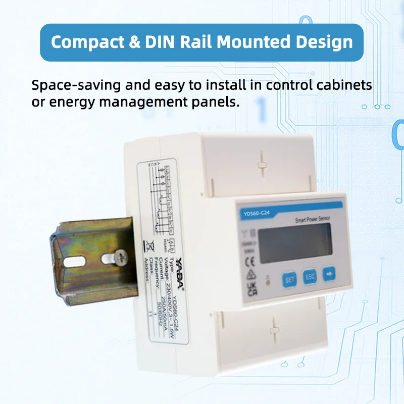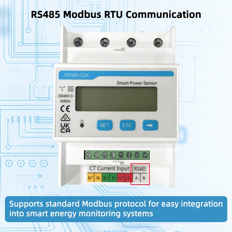 YADA YDS60-C24 Three-phase CE UKCA RCM Certificate Digital Energy Meter RS485 Modbus Solar PV Inverter